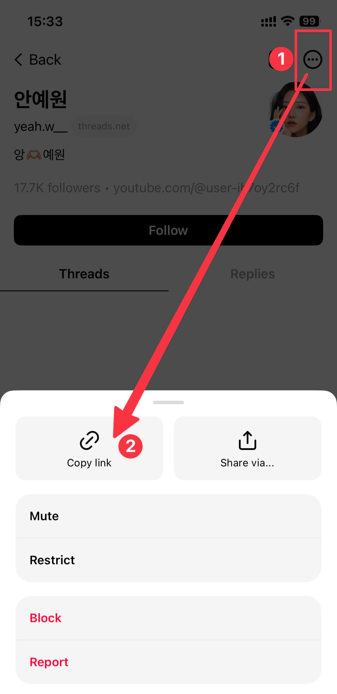 Step 2: Copy the Threads profile URL